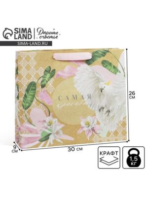 Пакет подарочный крафтовый, упаковка, «Самая красивая», M 30 х 26 х 9 см Дарите Счастье