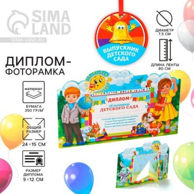 Диплом-фоторамка на выпускной «Выпускник детского сада», 350 г/м²Такой диплом-фоторамка в комплекте с медалью не оставит ни одного ребенка равнодушным