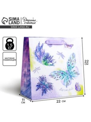 Пакет подарочный ламинированный квадратный, упаковка, «Лавандовая легкость», 22 х 22 х 11 см Дарите Счастье