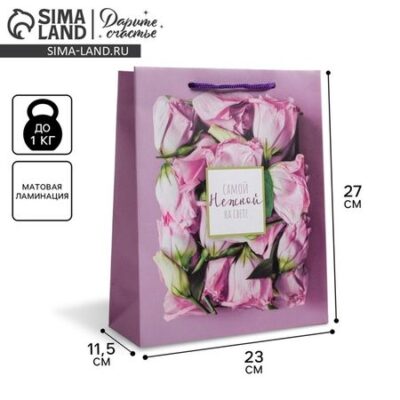 Пакет подарочный ламинированный, упаковка, «Самой Нежной на свете», ML 23 х 27 х 11.5 см Дарите Счастье