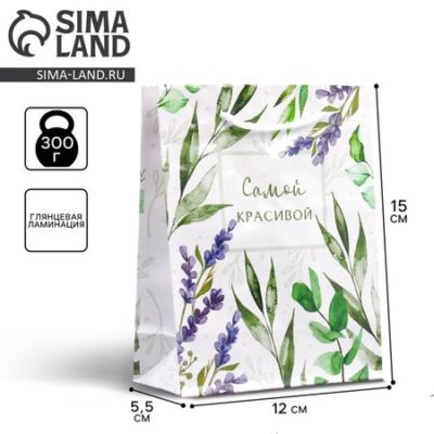 Пакет подарочный ламинированный, упаковка, Best wishes, S 12 х 15 х 5.5 см Доступные Радости