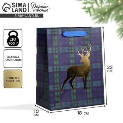 Пакет подарочный новогодний ламинированный «Стильный», MS 18 х 23 х 10 см Дарите Счастье