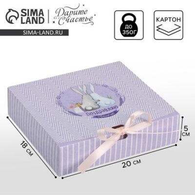 Коробка подарочная складная, упаковка, «Поздравляю», 20 х 18 х 5 см, БЕЗ ЛЕНТЫ Дарите Счастье