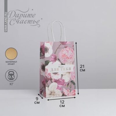 Пакет подарочный крафтовый, упаковка, «Для тебя», 12 х 21 х 9 см Дарите Счастье
