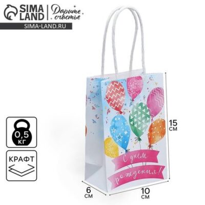 Пакет подарочный крафтовый, упаковка, «День рождения», 15 х 10 х 6 см Дарите Счастье