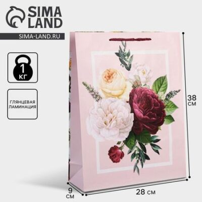 Пакет подарочный ламинированный, упаковка, Love, L 28 х 38 х 9 см Доступные Радости