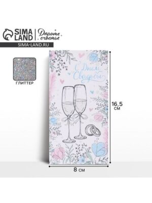 Конверт для денег «С днем свадьбы», фактурная бумага ВХИ, 16.5×8 см Дарите Счастье