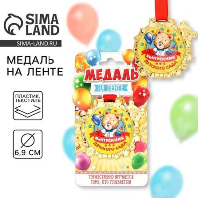 Медаль детская на выпускной «Выпускник детского сада», на ленте, золото, пластик, d=6.9 смВыпускной – это важное событие для ребенка. Медаль на ленте является