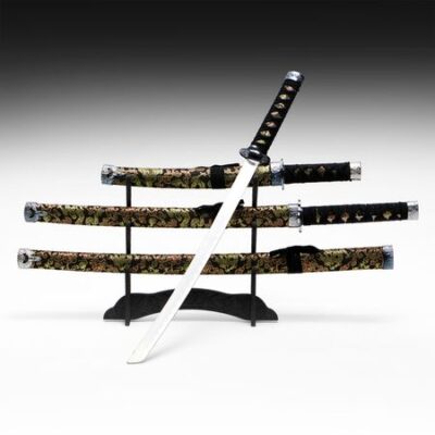Подарочный набор с тремя элегантными катанами станет отличным выбором для ценителей восточной культуры и уникальных предметов интерьера.