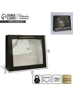 Пакет подарочный крафтовый с пластиковым окном, упаковка, «Burn to be wild», 31 х 26 х 11 см Дарите Счастье