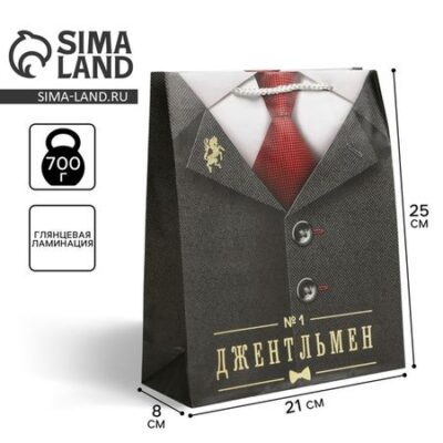 Пакет подарочный ламинированный, упаковка, «Джентльмен», ML 21 х 25 х 8 см Доступные Радости