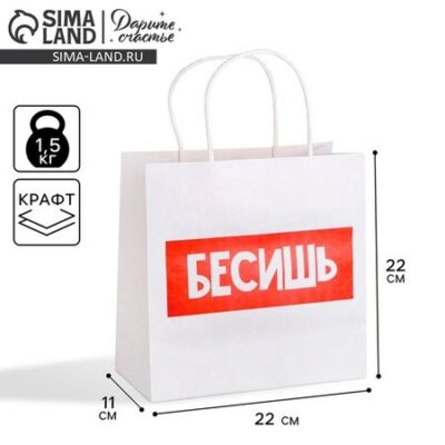 Пакет подарочный, упаковка, «Бесишь», 22 х 22 х 11 см Дарите Счастье