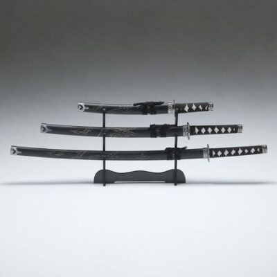 Откройте для себя уникальный мир восточной эстетики с подарочным набором сувенирных катан на подставке. Этот впечатляющий комплект, включающий три катаны