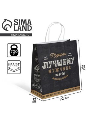 Пакет подарочный крафтовый, упаковка, «Настоящему мужчине», 22 х 25 х 12 см Доступные Радости