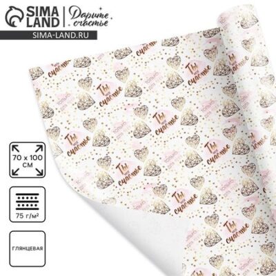 Бумага упаковочная глянцевая «Моё счастье», 70 х 100 см Дарите Счастье