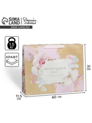 Пакет подарочный крафтовый, упаковка, «Прекрасной», L 40 х 31 х 11.5 см Дарите Счастье