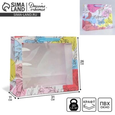 Пакет подарочный крафтовый с пластиковым окном, упаковка, «Поздравляю», 31 х 26 х 10 см Дарите Счастье