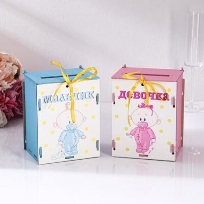 Свадебный банк для сбора денег «На новорожденных. Мальчик/Девочка», розово-голубой, 13.5×11