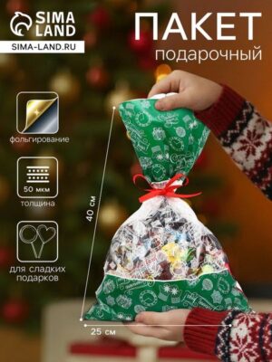 Новогодний подарочный пакет с ярким, красочным рисунком создаст праздничное настроение. Упаковка защитит подарок при его транспортировке и сохранит интригу