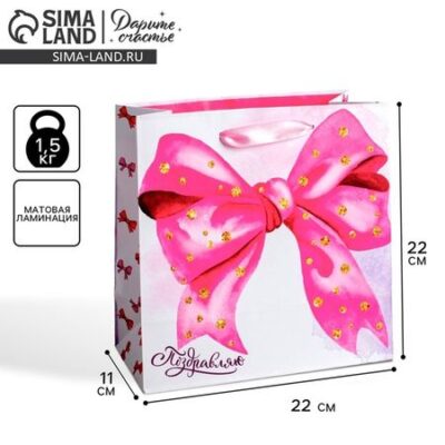Пакет подарочный ламинированный квадратный, упаковка, «Поздравляю!», 22 х 22 х 11 см Дарите Счастье
