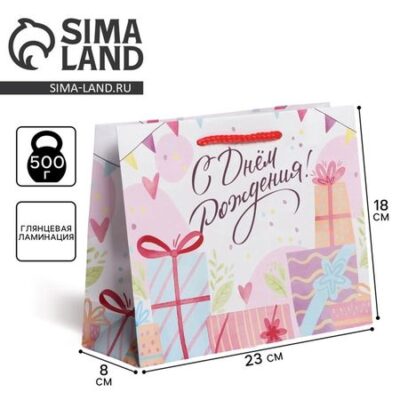 Пакет подарочный ламинированный, упаковка, Happy Birthday, MS 23 х 18 х 8 см Доступные Радости