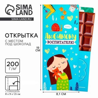 Открытка с местом под шоколадку, станет прекрасным подарком к празднику. Яркий дизайн, удобный формат и приятные эмоции обеспечены своему получателю.Плотность, г/м²: 200;