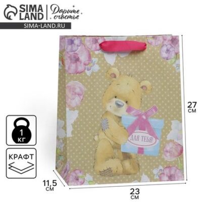 Пакет подарочный крафтовый, упаковка, «Для тебя!», ML 23 х 27 х 11.5 см Дарите Счастье