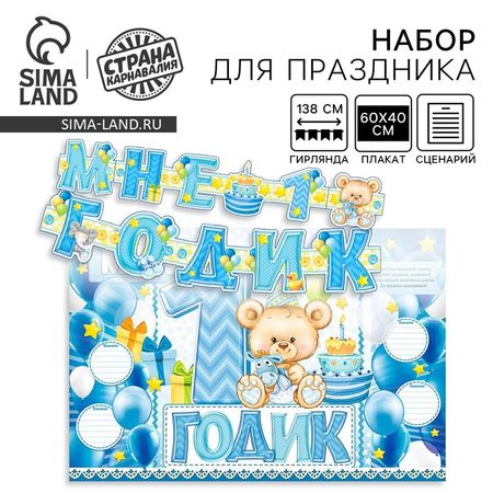 Гирлянда, плакат и сценарий для проведения праздника «Мне 1 годик», 250 г/м²