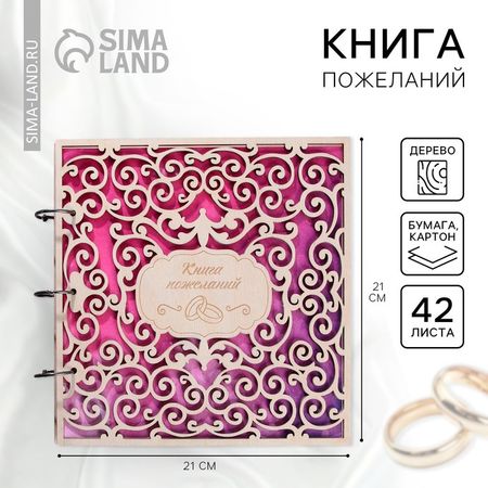 Гостевая книга с деревянной обложкой на кольцах. Записывать пожелания в эту книгу понравится всем гостям. А вам понравится то, что через много много лет вы сможете окунуться еще раз в атмосферу вашего праздника. Идеально для свадьбы в стиле бохо, рустик, минимализм, прованс. В книге 42 односторонних листа размером 21х21 см плотностью 80 гр., первый лист титульный, второй лист для молодоженов с указанием даты торжества и имён, последующие 40 листов для искренних пожеланий счастливой семейной жизни жениху и невесте.