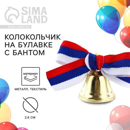 Главная » Подарки,сувениры,цветы Колокольчик на булавке с бантом на выпускной, триколор, d = 2,6 см Просмотров 13 Диаметр колокольчика 2,6 см.В связи с небольшим размером товара, колокольчики имеют низкое по громкости звучание! Сима-ленд