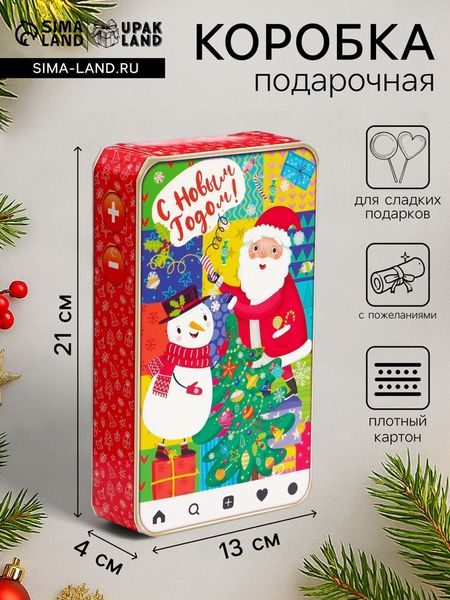 Подарочная новогодняя коробка предназначена для использования на утренниках и для подарков под ёлку для детей. Эта коробка создана специально для того, чтобы сделать праздник еще более ярким и запоминающимся.Коробка выполнена из качественных материалов, которые обеспечивают сохранность содержимого. Она имеет яркий и красочный дизайн, который отражает атмосферу Нового года.Эта коробка идеально подходит для упаковки конфет, сладостей, игрушек и других небольших подарков. Она может использоваться как самостоятельный подарок или как часть большого презента.Подарочная новогодняя коробка — это не просто упаковка, это способ создать волшебство и ощущение праздника. Она помогает передать детям радость и ожидание чуда, которое всегда ассоциируется с Новым годом.