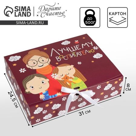 Главная » Подарки,сувениры,цветы Коробка подарочная складная, упаковка, «Воспитателю», 31×24.5×8 см Просмотров 10 Коробка подарочная складная, упаковка, «Воспитателю», 31×24.5×8 см Дарите Счастье