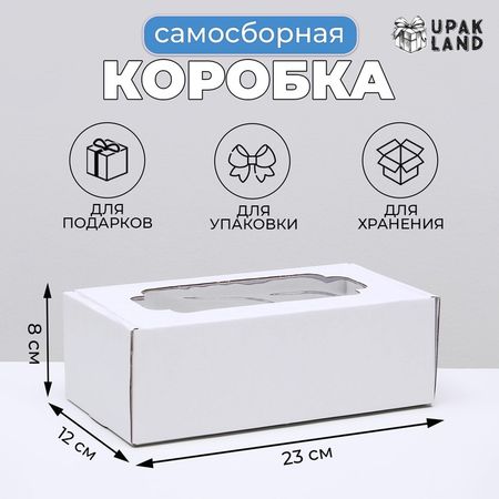 Коробка самосборная, с окном, белая, 23×12×8 см
