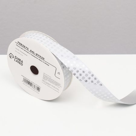Лента упаковочная для декора и подарков, серебряные снежинки, 2 см × 45 м