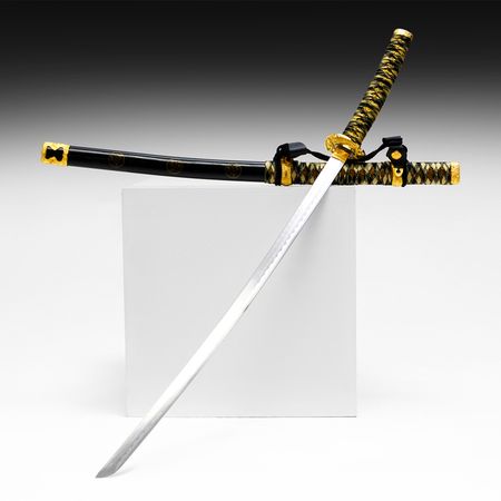 Погрузитесь в атмосферу восточной культуры с этой изысканной катаной, которая станет не только уникальным элементом декора, но и символом силы и грации. С черными ножнами и золотистой обмоткой, она привлекает внимание и создает неповторимый стиль в вашем интерьере.Преимущества катаныЭлегантный дизайн: Длина лезвия в 70 см и сочетание черного и золотистого цветов делают эту катану настоящим произведением искусства, которое украсит любой интерьер.Качество материалов: Лезвие выполнено из прочного металла, что обеспечивает долговечность и надежность, а ножны из пластика защищают меч от повреждений.Символика: Эта катана олицетворяет внутреннюю силу и гармонию, что делает её отличным подарком на 23 Февраля для мужчин, ценящих восточную культуру.Уникальный акцент: Благодаря своему дизайну, катана станет эффектным акцентом в вашем доме, привнося в него атмосферу загадочности и стиля.Отсутствие подставки: Несмотря на отсутствие подставки, катану можно легко разместить на полке или в витрине, демонстрируя её красоту и уникальность.Создайте атмосферу восточной философииЭта катана станет не только стильным дополнением вашего интерьера, но и источником вдохновения. Подарите себе и своим близким возможность наслаждаться красотой и символикой этого уникального изделия, которое напомнит о важности внутренней силы и гармонии в жизни.
