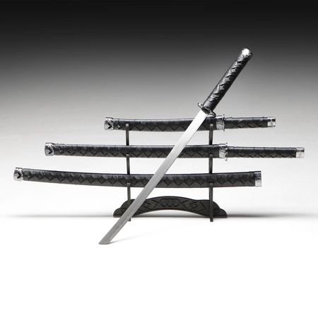 Макет оружия «Сувенирные катаны на подставке 3в1. Чёрные ромбы», подарочный набор, ножны кожзам, 47 см; 70 см; 89 см