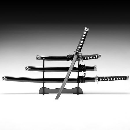 Макет оружия «Сувенирные катаны на подставке 3в1. Чёрный глянец», подарочный набор, ножны дерево, 53 см; 76 см; 101 см