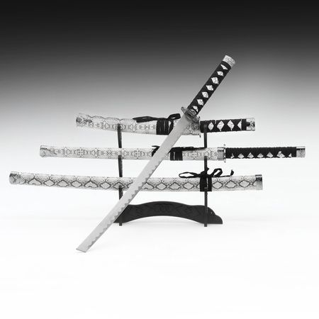 Макет оружия «Сувенирные катаны на подставке 3в1. Серая змея», подарочный набор, ножны кожзам, 47 см; 70 см; 89 см