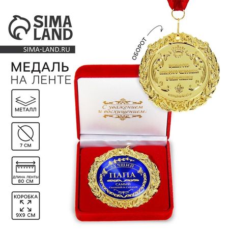 Создана формула идеального поздравления: классическая форма и праздничное содержание. Именно такой и является Медаль в бархатной коробке «Лучший папа», d=7 см.. Это отличная награда для самых достойных представителей своего времени. Эксклюзивный сувенир станет достойным украшением вечера и поможет создать незабываемую церемонию поздравления.Медаль изготовлена из фигурного металла золотистого цвета, декорирована цветной вставкой с акриловым покрытием, что предотвращает её потускнение. Награда упакована в бархатную подарочную коробку, идет в комплекте с лентой.Порадуйте этой медалью близкого человека в День рождения, 14 февраля или просто так, без повода. Вы подарите море эмоций и радости, ведь так приятно знать, что вас любят и ценят просто за то, что вы есть.