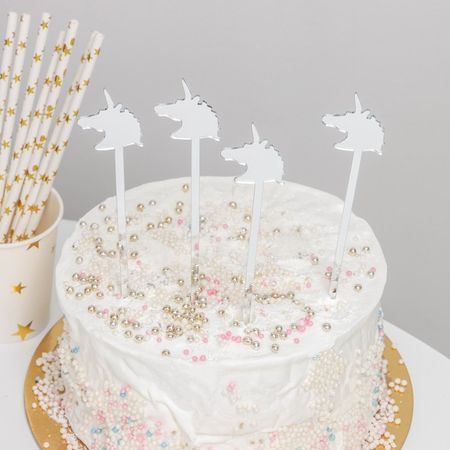 Набор топперов для торта «Единороги, 4 шт., серебристые