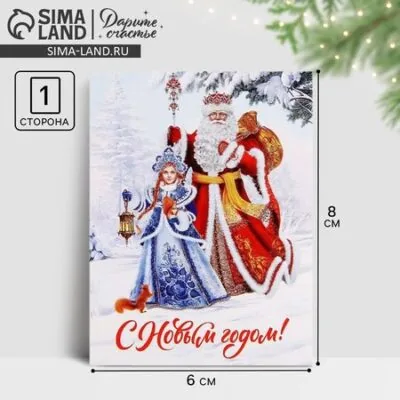 Главная » Подарки,сувениры,цветы Открытка-мини «С Новым годом!», Дед Мороз и Снегурочка, 6×8 см Просмотров 30 Открытка-мини «С Новым годом!», Дед Мороз и Снегурочка, 6×8 см Дарите Счастье