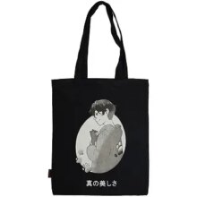 Стильная сумка выполнена из текстиля и оформлена оригинальным принтом.