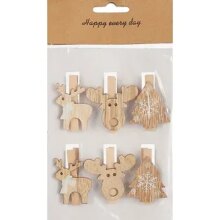 Прищепки Новогодние (два оленя, елочка), 6шт, 3,5 х