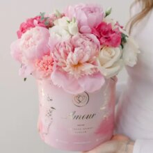 Букет в розовой шляпной коробке Amour Mini из розы