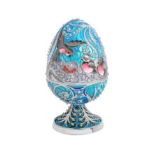 Шкатулка-яйцо Снегири из серебра со стеклом и эмалью