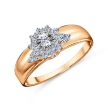 Золотое кольцо с бриллиантами и родированием 585*Золотой