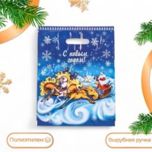 Пакет новогодний, полиэтиленовый с вырубной ручкой