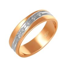 Золотое обручальное кольцо с бриллиантами и родированием