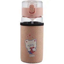 Многоразовая стеклянная бутылочка с трубочкой и защелкой.