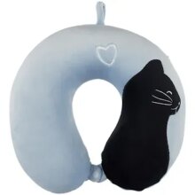 Подголовник с кнопкой Черный котик на синем фоне (текстиль)